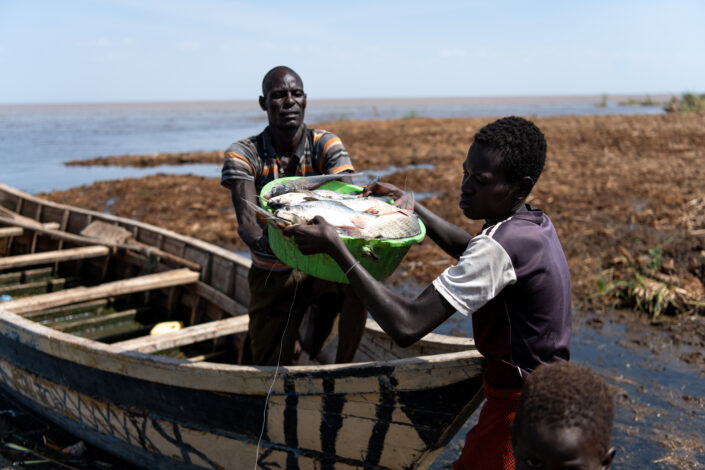 Les sécheresses de plus en plus régulières qui s’abattent sur la région du Turkana, dans le nord du Kenya, forcent les populations à s’adapter à de nouveaux moyens de productions. Les éleveurs qui n’ont plus l’eau pour faire boire leur cheptel descendent des montagnes pour devenir pêcheurs.